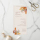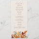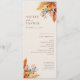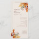 Le programme de mariage d'automne élégant présente un beau bouquet de feuilles d'automne en rouille, jaune, or, moutarde, marron et violet.