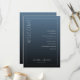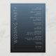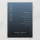 This elegant wedding program features a minimalist design with a vertical layout, divided by a thin white line creating a stylish margin. The gradient blue background transitions from light to dark, enhancing the modern and sophisticated aesthetic. A bold serif font spells out "WELCOME" vertically on the left, while the right side lists ceremony events in clean sans-serif text, ensuring clarity and readability. The overall mood is formal and inviting, perfect for a ceremonial occasion, with customizable elements allowing personalization for any event date.