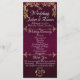 Ce design romantique présente un élégant arrière - plan de prune violette et une bordure de feuilles d'or, détails de cérémonie de mariage & merci sur le devant avec les membres de la fête de mariage sur le dos. Disponible en plusieurs couleurs pour votre thème mariage. Disponible en plusieurs couleurs pour votre thème mariage. Conçu pour coordonner avec la collection Elegant Doves, Heart & Gold Feuille Mariage Collection. Pour modifier les détails, cliquez sur "Personnaliser". Pour déplacer le texte ou modifier la taille, la police ou la couleur du texte, cliquez sur "Cliquez pour customiser plus loin"