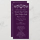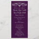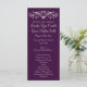Élégant Flourish Deep Purple Vertical Wedding Programmes avec un parchemin fleuri avec coeur en haut. Il s'agit d'un programme de mariage vertical à deux côtés de 4" x 9". Il suffit d'utiliser les champs modèles pour ajouter vos propres détails de cérémonie de mariage ou d'utiliser le bouton "Customiser" pour ajouter ou supprimer des lignes de texte ou déplacer des choses. programmes de mariage violet, programmes de mariage bon marché, programmes de mariage bon marché, programmes de mariage vertical, élégant, florissant, coeur, programmes de mariage à deux côtés, regal, violet, violet foncé, royal