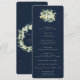 Un simple programme de mariage de la marine / ordre de cérémonie, avec un bouquet / pochette de neiges peintes à la main et eucalyptus sur le devant et une couronne sur le dos. Tout le texte est entièrement modifiable. Veuillez consulter cette collection dans mon magasin pour les programmes avec des formulations alternatives et dans différentes tailles/couleurs/formes. Coordonner les éléments également disponibles.