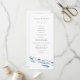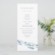 Cet élégant programme d'été pour les mariages de plage moderne dispose d'une école de poissons d'aquarelle bleu nageant le long du fond. Personnalisez avec votre programme de cérémonie de mariage en lettres bleu marine, et ajoutez les détails de votre mariage à l'arrière.