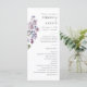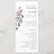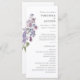 Guidez vos invités à travers votre cérémonie avec ce programme de mariage bien conçu, orné de lilas aquarelle peint à la main dans la lavande douce, le violet et le bleu avec d'élégants accents de verdure. Le design floral délicat apporte une touche romantique et sophistiquée, ce qui en fait un beau souvenir pour votre journée spéciale. Personnalisez chaque détail, du libellé et des styles de police à la mise en page, en vous assurant qu'il reflète parfaitement votre style de cérémonie et de mariage. Une façon raffinée de tenir les invités informés tout en ajoutant un élément floral cohésif à votre esthétique mariage.