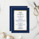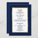 Offrez à vos invités ce programme de mariage simple et élégant avec un script moderne, du texte bleu marine, un palmier doré artistique et une bordure en or métallique et bleu marine. Customisez-le avec vos noms, date du mariage, message de remerciement et détails de la cérémonie. Les noms des fêtes de mariage sont à l'arrière. Contactez-moi si vous avez besoin d'aide ou d'une commande personnalisée.