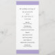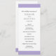 Programme moderne de mariage violet lavande numérique avec une bande audacieuse en haut et en bas. Vos noms sont dans une police serif classique et vos détails sont dans une combinaison d'une police sans serif moderne et d'un script élégant. Le dos a une bande le long du fond avec votre monogramme. Cette conception simple et minimale avec un libellé traditionnel est idéale pour un mariage formel.