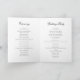 Ce programme de mariage plié comprend une élégante crête monographique vintage avec calligraphie de script classique sur le devant, avec l'ordre de cérémonie et la fête de mariage à l'intérieur, et une photo du couple heureux et une note de remerciement sur le dos.