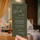 Make a heartfelt first impression at your wedding reception with this sophisticated "Welcome & Thank You" place card—designed to rest beautifully on each guest’s plate in olive green theme. Featuring graceful script typography and a timeless layout, this elegant card warmly greets your loved ones while expressing gratitude for sharing your special day. Ideal as a dual-purpose place card & welcome note—combine sentiment and function without cluttering your tables-cape. Designed for couples who value refined details, this card complements modern and luxe wedding themes. Print on premium card stock for a luxurious finish that guests will cherish (or even keep as a sweet keepsake!). Because love is best served with gratitude.