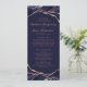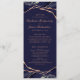 Offrez à vos invités ce programme de mariage simple et élégant, avec des tons classiques d'agate bleu marine avec des veines métalliques en feuille d'or rose. Customisez-le avec vos noms, date du mariage, message de remerciement et détails de la cérémonie. Les noms des fêtes de mariage sont à l'arrière. Contactez-moi si vous avez besoin d'aide ou d'une commande personnalisée.