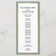Offrez à vos invités ce programme de mariage simple et élégant avec script moderne et texte noir avec un palmier artistique et une bordure en cuivre or rose métallique. Customisez-le avec vos noms, date du mariage, message de remerciement et détails de la cérémonie. Les noms des fêtes de mariage sont à l'arrière. Un arrière - plan vert sage coordonné est à l'avant et à l'arrière. Contactez-moi si vous avez besoin d'aide ou d'une commande personnalisée.
