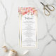 Cet élégant programme de mariage comprend un bouquet floral couleur aquarelle en rose et pêche avec un cadre doré. inclure le nom de la mariée et du marié, la date et l'emplacement du mariage, l'ordre de cérémonie et la fête de mariage.