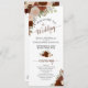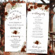 Ce magnifique programme de mariage présente un élégant design boho chic floral avec des roses peints à la main dans les tons de rouille orange, de bois brûlé, de corail et de pêche sur un arrière - plan blanc. Les titres sont écrits en calligraphie de script sophistiquée, et il y a de l'espace pour vos détails de cérémonie et de mariage, ainsi qu'un bref merci pour votre invité. Merveilleuse façon d'accueillir vos amis et votre famille à votre fête mariage.