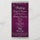 Ce design romantique présente un élégant arrière - plan violet avec des bordures de ruban, détails de la cérémonie du mariage et merci sur le devant avec les membres de la fête de mariage sur le dos. Disponible en plusieurs couleurs pour votre thème mariage. (Le ruban est simulé dans l'illustration). Disponible en plusieurs couleurs pour vos couleurs de thème mariage. (Le ruban est simulé dans l'illustration). Conçu pour coordonner avec la collection Mariage "Two Shall Become One - Silver & Gold". Pour modifier les détails, cliquez sur "Personnaliser". Pour déplacer le texte ou modifier la taille, la police ou la couleur du texte, cliquez sur "Cliquez pour customiser plus loin"