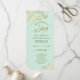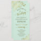 Ce magnifique programme de mariage présente un design élégant avec du texte doré sur un arrière - plan de couleur vert menthe néo et des boucles et tourbillons en faux feuille doré en dentelle dans les coins. Les titres sont écrits en calligraphie de script sophistiquée, et il y a de l'espace pour vos détails de cérémonie et de mariage, ainsi qu'un bref merci pour votre invité. Merveilleuse façon d'accueillir vos amis et votre famille à votre fête mariage.