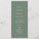 Ce programme de mariage forestier rustique de la nature boisée est parfait pour un mariage de destination boisée. Le design vert sauge foncé présente une typographie rustique et simple avec une atmosphère de montagne boisée. Inclure les noms du couple, la date et l'emplacement du mariage, un message de remerciement, l'ordre de service, la fête de mariage et un mémorial optionnel "en mémoire d'amour".