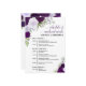 Ces belles cartes sont conçues pour informer vos invités du programme de votre célébration de mariage. Le design chic rustique boho comprend des roses peintes à la main à l'aquarelle, des feuilles d'eucalyptus et de la verdure de jardin dans des tons de pourpre, prune et lavande. Le devant comporte une liste d'événements pour tout le week-end, et le dos présente un calendrier détaillé pour le jour du mariage lui-même. Excellent ajout à un sac de bienvenue de mariage, et une merveilleuse façon de remercier vos invités de célébrer avec vous !