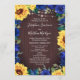 Ces programmes de mariage comprennent des tournesols aquarelles, des roses bleus, du feuillage et des lampes à cordes. Le devant de la carte a la cérémonie et le dos de la carte liste la fête de la mariée. Ces programmes de mariage font partie d'une collection qui comprend une gamme complète de papeterie mariage correspondante que vous pouvez personnaliser pour votre mariage. Visitez notre magasin pour voir la gamme complète.