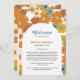 Un beau motif de fleurs rétro inspiré des années 60 70 avec arc. Une carte de programme minimaliste vintage look mariage avec des motifs super et palette de couleurs rétro pour tous les amateurs de motifs super, marguerites florales et de couleurs rétro. Des invitations de mariage et d'autres articles de papeterie sont également disponibles.