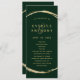 Ce programme de mariage est composé d'un cadre de cercle en faux or avec une élégante esperluette et de calligraphie simple avec un arrière - plan vert de forêt.