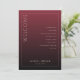 This elegant wedding program features a vertical layout with a sophisticated maroon gradient background, transitioning from light to dark. The design includes crisp white borders and text, creating a formal and polished look. On the left side, bold serif typography welcomes guests, while the right side lists ceremony details in an organized manner. The overall style is traditional and refined, perfect for a classic wedding celebration.