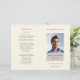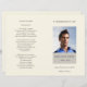 Forage moderne 4 pages Programme funéraire Ordre de service avec fenêtre pour ajouter une photo de votre être aimé, sur un arrière - plan crème clair avec texte en gris - modèle entièrement personnalisable.