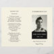 Forage moderne 4 pages Programme funéraire Ordre de service avec fenêtre pour ajouter une photo de votre être aimé, sur un arrière - plan crème clair avec texte en noir - modèle entièrement personnalisable.