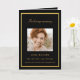 Un programme élégant de 4 pages. Un arrière - plan noir, un cadre en faux or et un espace pour votre photo sur le devant. Personnalisez et ajoutez le nom, les dates et votre texte. Texte doré.
