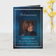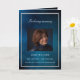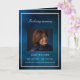 Un programme élégant de 4 pages. Un ciel bleu foncé comme arrière - plan, un cadre faux argenté, et l'espace pour votre photo à l'avant. Personnalisez et ajoutez le nom, les dates et votre texte. Texte blanc.