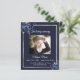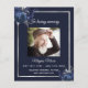 Un programme élégant de 2 pages. Un arrière - plan bleu foncé, un cadre faux argenté, des fleurs bleues et un espace pour une photo. Personnalisez et ajoutez le nom, les dates et votre texte.