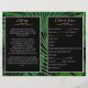 Ce design présente des feuilles tropicaux avec un cadre pour une photo sur l'avant et des motifs feuille tropicaux sur l'arrière avec la chambre pour les détails du service. ( Ceci est destiné à être plié en deux)