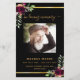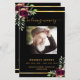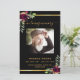 Un programme élégant de 2 pages. Un arrière - plan noir, un cadre en faux or, des fleurs bordeaux et de l'espace pour votre photo. Personnalisez et ajoutez le nom, les dates et votre texte.