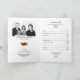 Un programme funéraire au style magnifique avec un simple arrière - plan blanc. Sur la couverture, une grande photo du défunt avec une bordure blanche, avec son nom, ses dattes et un élégant bouquet de rose rouge. A l'intérieur, vous trouverez la commande de service ainsi qu'une photo de famille et des informations sur le cimetière. Le côté arrière a la liste pour tous les porteurs de cercueils et les honoraires.