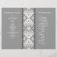 Élégant programme de mariage simple bipli avec motif damassé vintage blanc sur une couleur arrière - plan gris clair. Utilisez l'option "PERSONNALISER IT" pour modifier le texte et modifier l'espacement, etc. Pliage requis à la réception. Pour d'autres teintes ou couleurs, veuillez contacter luxuryweddinginvitations@gmail.com