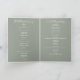 Programme de mariage à script signature vert sauge comportant de jolies guirlandes lumineuses et une typographie chic et moderne. Ce programme de mariage élégant peut être personnalisé avec vos informations spéciales du jour de votre mariage. Conçu par Thisisnotme©