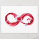 Infinity symbole of continuous stream of red pouring into glass glass glass on white background.