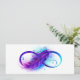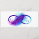 Infinity symbole with a beautiful feather painted in purple and blue bright colors on white background