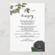 Un design gothique mariage de scénario Halloween avec des roses noirs et des vignes pendantes. Un design d'Halloween blanc qui utilise des fleurs botaniques noires et foncées avec des typographies de calligraphie vintages. Un design gothique élégant idéal pour les thèmes mariages d'Halloween. Un programme d'itinéraire de mariage rose noir unique. Des invitations de mariage et d'autres articles de papeterie sont également disponibles.