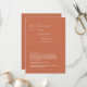 Une belle conception mettant en valeur la typographie de calligraphie de script élégante sur un arrière - plan orange brûlé en terre cuite. Parfait pour tous ceux qui aiment les conceptions minimalistes modernes. Un design design design et tendance pour les mariages itinéraires avec des éléments classiques. Des invitations de mariage et d'autres articles de papeterie sont également disponibles.