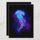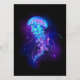 Grande méduse bleue, artistiquement dessinée, brillante, brillante, avec de longues tentacules sur arrière - plan noir avec bioluminescence violette. Méduse brillante.