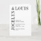 Programme de mariage plié moderne avec un design minimaliste noir et blanc avec vos noms dans une grande police le long du côté gauche et du dessus. Cette conception est assez simple pour un mariage officiel tout en faisant une déclaration audacieuse.