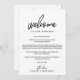 Ces cartes de lettre de bienvenue de mariage et d'itinéraire à la calligraphie fantaisiste sont parfaites pour un mariage moderne. Le design présente une typographie élégante mais rustique pour un look minimal simple. Sélectionnez le papier kraft pour un look plus rustique. Le recto de la carte présente une lettre de bienvenue et le verso présente l'itinéraire du mariage. Ces notes sont parfaites pour les mariages de destination et les sacs de bienvenue pour les invités d'hôtel.