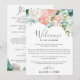 Ces cartes de lettre de bienvenue aux pivoines romantiques & itinéraire sont parfaites pour un mariage élégant. Le design floral présente des fleurs aquarelles en cascade rose, pêche et blanc. Le recto de la carte présente une lettre de bienvenue et le verso présente l'itinéraire du mariage. Ces notes sont parfaites pour les mariages de destination et les sacs de bienvenue pour les invités d'hôtel.
