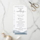 Bordures élégantes et modernes à l'aquarelle bleu ombré pour un programme de mariage. Le programme comporte une calligraphie mignonne accentuée de "mariage" avec plusieurs lignes pour des listes de texte personnalisées pour l'ordre des événements de la cérémonie, le cortège de mariage et un mot de remerciement.