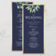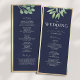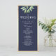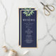 Notre programme de mariage rustique et élégant combine le charme bohème avec des teintes dorées botaniques et bleues marine. Avec une verdure d'eucalyptus à l'aquarelle et une écriture calligraphique moderne, il offre une touche sophistiquée avec une touche naturelle et artistique.