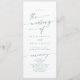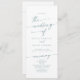Ce programme de mariage chic, turquoise et blanc à thé est parfait pour une cérémonie de mariage minimaliste. Le design bohème moderne bleu vert et blanc présente une calligraphie rustique simple avec un style unique mais classique qui rappelle la plage côtière et une croisière d'été sur l'océan. Personnalisez votre programme de mariage avec vos noms, la date du mariage, l'emplacement, l'ordre de service, la fête de mariage et optionnel en mémoire d'amour.