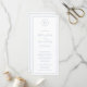 Simple programme de mariage bleu poussiéreux avec votre monogramme dans un cercle en haut et vos détails mariages entourés d'une mince bordure. Vos noms et en-têtes sont dans une police de caractères manuscrite élégante. La disposition classique et traditionnelle fait de ce programme un grand succès pour un mariage formel.