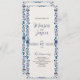 Cette conception de programme de mariage élégant et classique à fleurs blanches de la marine mexicaine présente un riche cadre vertical inspiré de l'art populaire mexicain, avec des motifs floraux et botaniques stylisés dans des nuances de bleu, de blanc et de sarcelle sur un fond crème texturé. Les bordures symétriques sur les bords gauche et droit sont ornées de fleurs fantaisistes, de feuilles, de vignes ondulantes et d'éléments folkloriques traditionnels comme des maracas avec des motifs géométriques. Le centre est laissé vide, créant un espace élégant parfait pour le texte, ce qui le rend idéal pour une utilisation dans les programmes, les menus, les invitations ou les annonces cérémonielles.