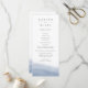 Ce programme de mariage chic côtier s'accorde avec notre collection Ebb Tide, avec un lave à l'aquarelle transparente de bleu périwinkle poussiéreux sur le fond, avec votre texte personnalisé en lettres grises douces. Customisez le devant avec votre programme de cérémonie, et ajoutez votre fête de mariage à l'arrière.