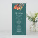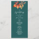 Célébrez votre mariage d'automne grâce à cet élégant programme à deux côtés qui présente un feuillage de chute d'aquarelle dans de riches tons turquoises et oranges brûlées. Ce design boho rustique comprend de l'espace pour l'ordre de cérémonie, la fête de mariage et un message de remerciement. Idéal pour les mariages d'extérieur, de forêt ou de grange, il ajoute une touche personnelle et élégante à votre célébration.