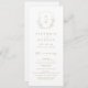 Initiales monogrammes encadrées par d'élégantes crêtes et des feuilles botaniques illustrés à la main, vos détails de l'événement en écriture élégante et police classique, simple et luxueux. Grands programmes en faux or et blanc pour mariage classique moderne, mariage formel simple, élégant mariage de jardin botanique. Voir toutes les pièces correspondantes dans la collection.