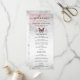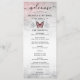 Vous recherchez des idées de programme élégantes pour votre cérémonie mariage, quinceanera ou toute autre célébration spéciale? Créez vos propres programmes de mariage papillon rose sur ce modèle facile do-it-yourself. L'aquarelle de Raphaela Wilson représente des confettis et des papillons monarques rose clair avec un effet 3D cool sur une texture rustique en pierre gris clair avec des étincelles légères. Les ailes de ces créatures fantaisistes de jardin ont également un subtil motif rose floral unique. Ajoutez un texte personnalisé pour : La Cérémonie (Ordre de Service), qui est à la fête de mariage, ainsi qu'un message de Merci personnalisé pour vos invités (cet espace peut également être utilisé pour les informations de réception). Si vous avez besoin d'une place supplémentaire pour les servantes, les groomsmen ou d'autres participantes à la fête de mariage, vous pouvez modifier la taille du texte. N'hésitez pas à modifier également la calligraphie de script et les sélections de polices modernes si vous préférez un autre style de typographie. Si vous cherchez des programmes de mariage élégants avec des papillons roses pour votre grand jour, ces cartes à carreaux personnalisées s'adaptent parfaitement à vos plans! Même les reformuler pour d'autres célébrations spéciales, comme une quinceanera / coing, douce fête de 16 ans, anniversaire, etc. Bon appétit ! Catégorie : programmes de mariage aquarelle. Couleurs de fête à thème papillon : rose clair, rouge or rose, gris clair, gris foncé, argent, noir et blanc (avec options de champagne jaune or).
